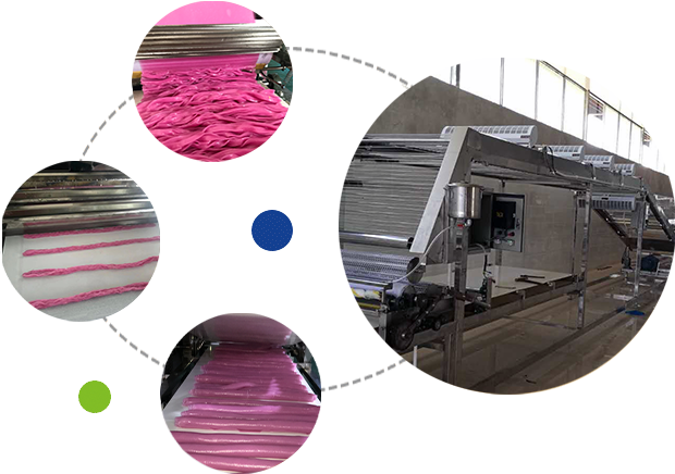 大型河粉機(jī)的工作主要是將磨好了的米漿自動輸入大型河粉機(jī),通過大型河粉機(jī)蒸箱里面的蒸氣把它蒸熟成形,變成河粉···